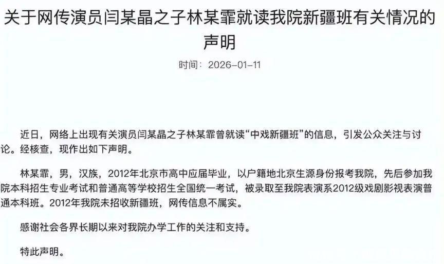 闫学晶的儿子林傲霏被传可能借“新疆班”的便利进了中戏,这事儿一出来,网友又扒出丛珊的儿子和林傲霏竟是中戏同届,于是开始瞎猜“丛珊儿子也是靠关系进去的”。